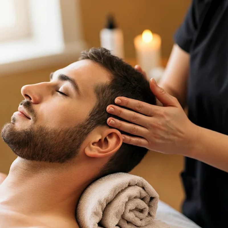 - Pressure Point Therapy: Targeted pressure on key areas of the scalp, neck, and temples releases tension and restores inner balance.